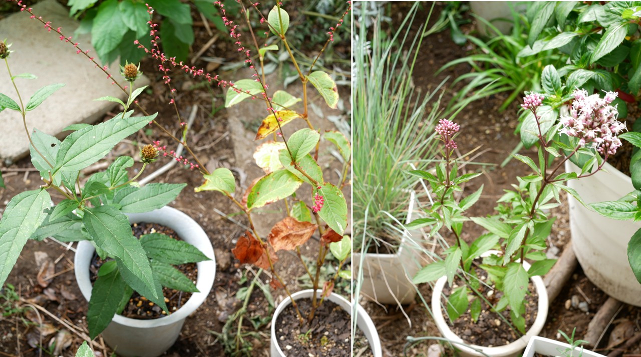 購入したミズヒキ(左)とフジバカマ(右)です。